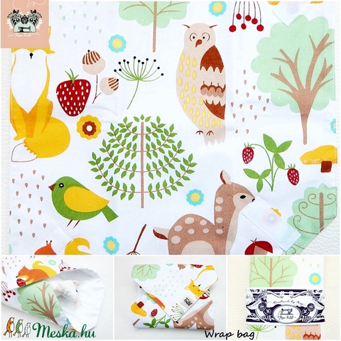 Újraszalvéta, vízhatlan textil szalvéta erdei rókás