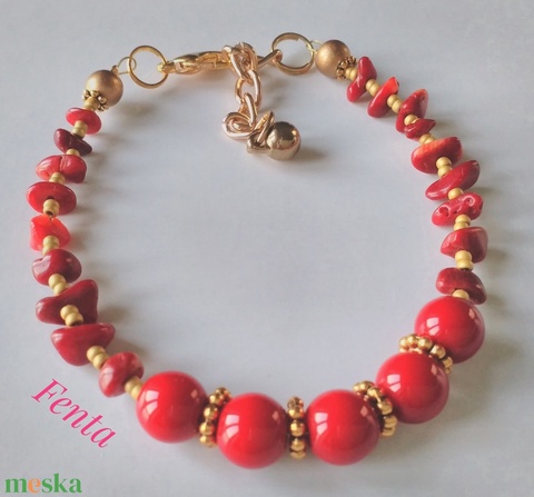 - Anyaga: tört korall, korall gyöngy, matt arany kásagyöngy, arany köztes, kapocs