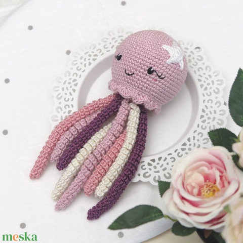 Horgolt vintage rózsaszín polip