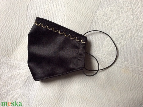 Szatén fekete,fekete-arany csipkés maszk