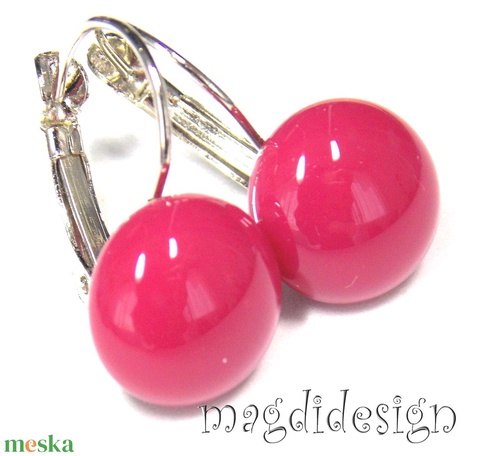 MAXI Mályvás-málna üvegékszer kapcsos fülbevaló