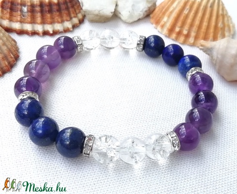 Lápisz lazuli - ametiszt - hegyikristály ásványkarkötő, féldrágakő karkötő, egyedi ásványkarkötő