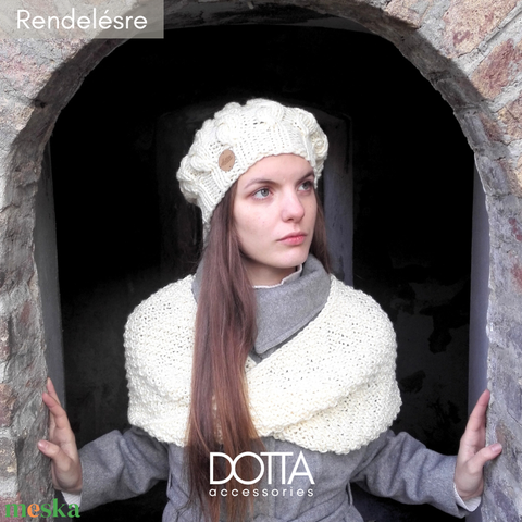 Dotta szett választható sállal - kézzel kötött sapka sál - vastag meleg puha fonalból - gyapjú női szett, krémfehér