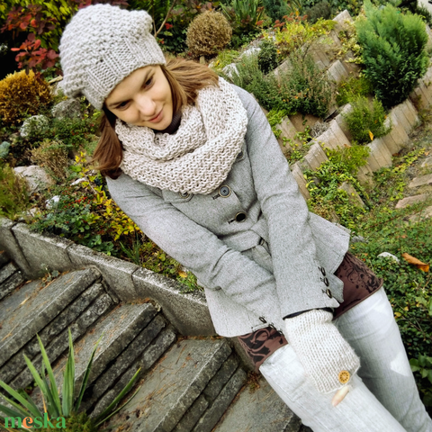 Kötött szett - Kincső sapka sál kesztyű kollekció árnyalatokban - téli meleg vastag gyapjús fonalból kötve