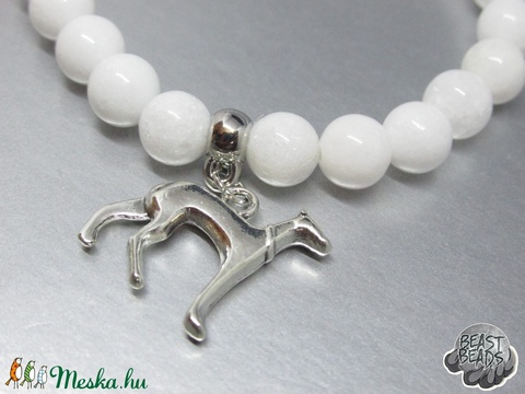 A támogatói karkötő ásvány gyöngyszemekből készült egyedi ékszer. Középen műanyag medáltartóval ellátott, ródium színű szerelékkel és variálható kutyás kiegészítőkkel, vagy ezüst kutya fejjel díszített karkötők. A medálvariációk között megtalálhatóak a csontos, az agaras, de akár a pulis vagy a tacskós változatok is. Az ezekről készült fotók a képek között megtekinthetőek. A változatokból nincs állandó kínálat, de rendelés esetén bármikor elkészítjük a kívánt darabot.