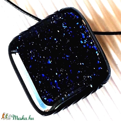Csillagfényes éjszaka sötétkék üveg medál, NEMESACÉL, üvegékszer