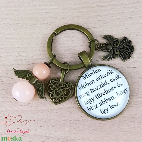 Minden időben érkezik feliratos üveglencsés kulcstartó táskadísz barack angyallal