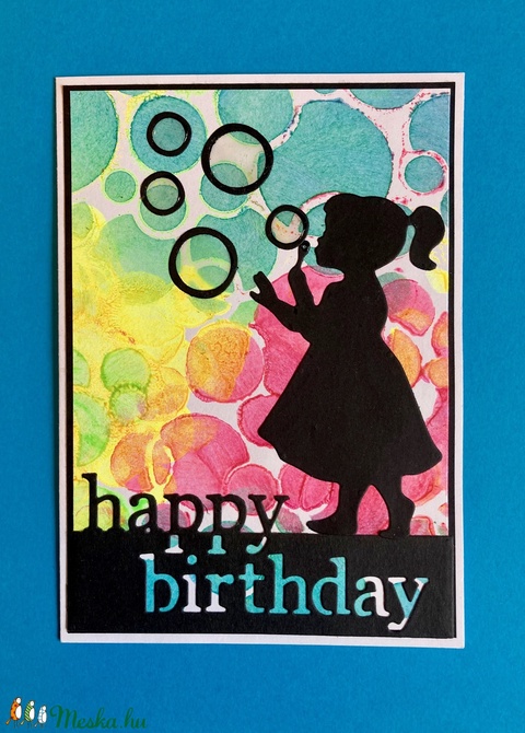"Szappanbuborék" születésnapi képeslap, buborék, kislány