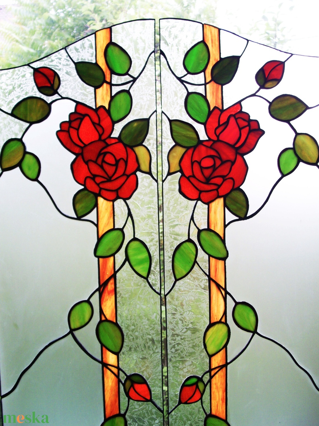 - Anyaga: wissmach üveg, savmaratott üveg, jégvirágos üveg, rézfólia, forrasztócin, patina