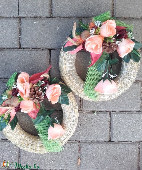 ŐSZI szalma alapos-virágos koszorú, kopogtató KÉSZTERMÉK
