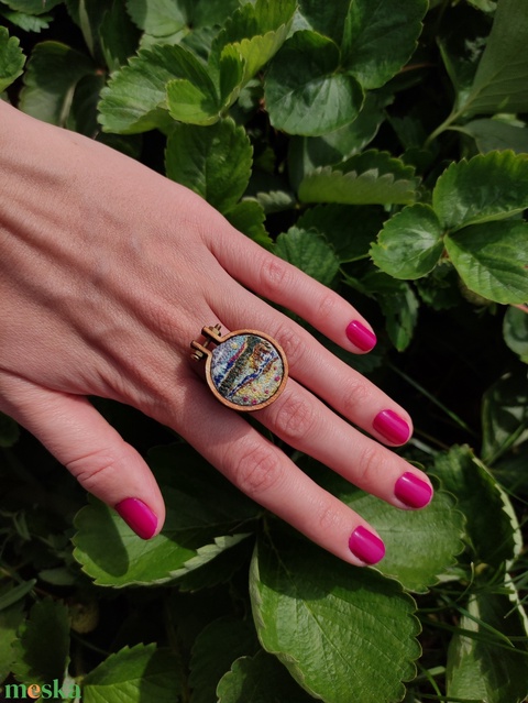 - Anyaga: hímzőcérna, cérna, gyűrű alap, fa