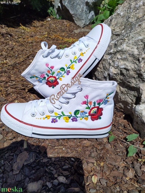 Magyaros, Kalocsai virágos tornacipő kézzel hímzett