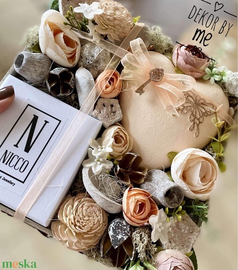 - Anyaga: fadoboz, termések, selyemvirágok, ásványkarkötő