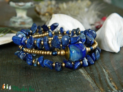 moretti üvegrúd, kézzel készült lámpagyöngy, lapis lazuli, réz szerelék, cseh üveggyöngyök, üveg