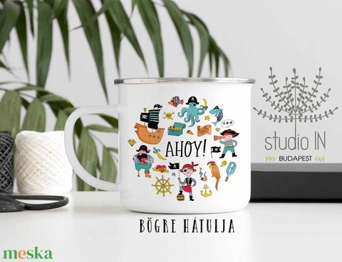 Kalózos névre szóló zománcozott bádog bögre gyerekeknek.