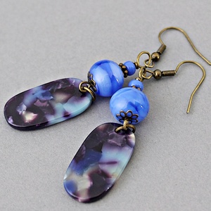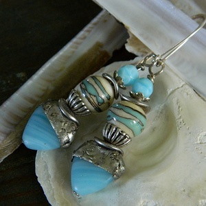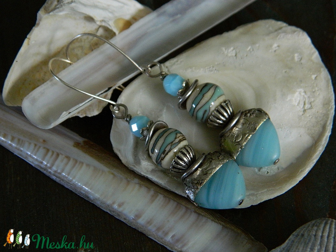 Elvarázsolt - lámpagyöngy fülbevaló rusztikus világoskék üveggyöngy fülbevaló, boho bohém fülbevaló muranoi üvegékszer