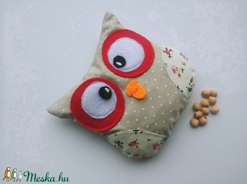 Bagoly doktor- meggymag párna ( piros virágos- drapp pöttyös)