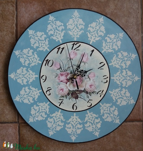 - Anyaga: fa, gesso, struktúrpaszta, rizspapír, decor soft, quartz óramú, mutató, lakk, papír, fa
