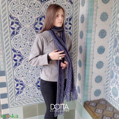 Dotta sál csavart mintával rojtokkal - kézi kötött sál - kék hosszú sál - hosszú női sál