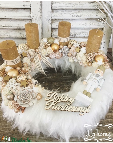 Diótörő adventi koszorú-arany