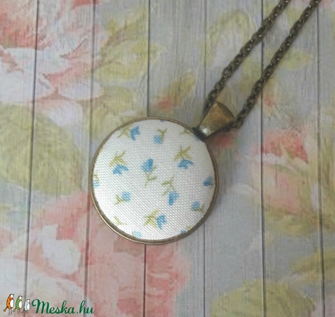 Kékvirágos textilgomb nyaklánc