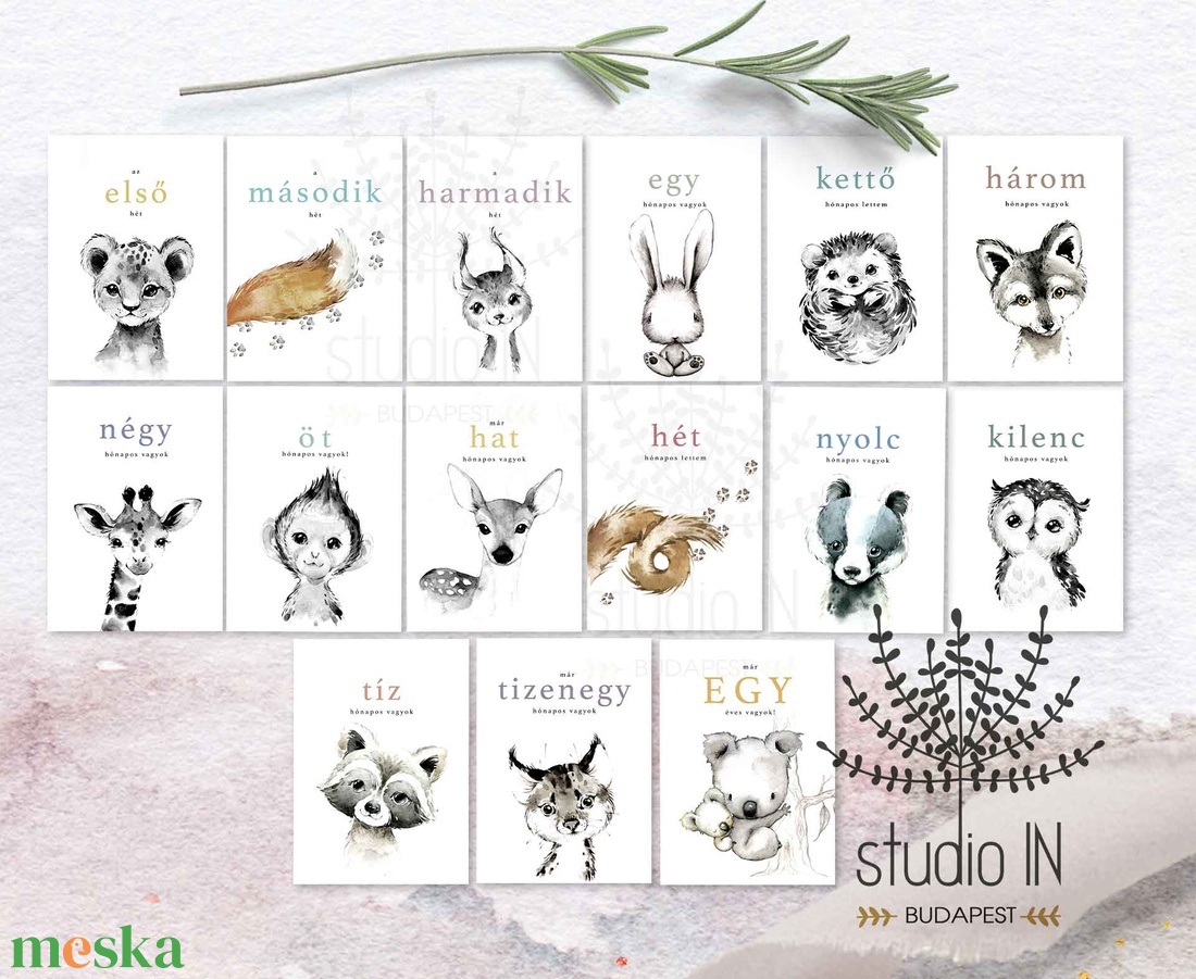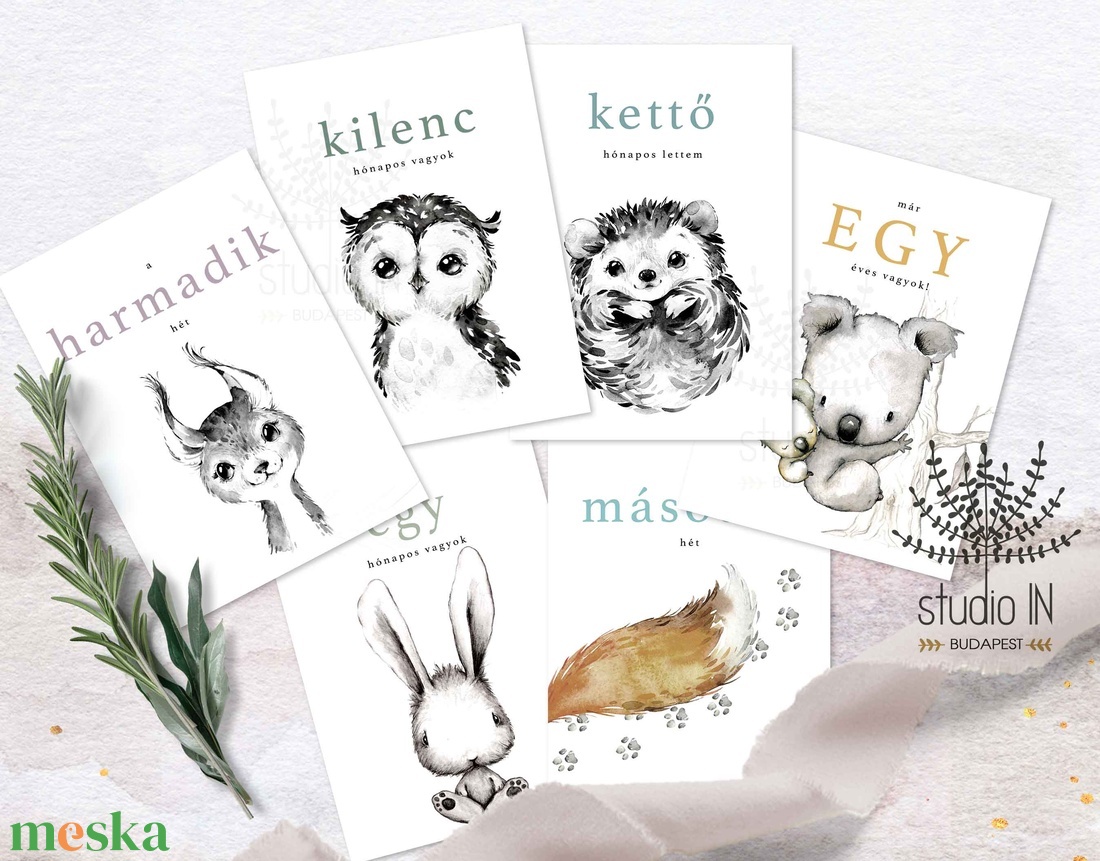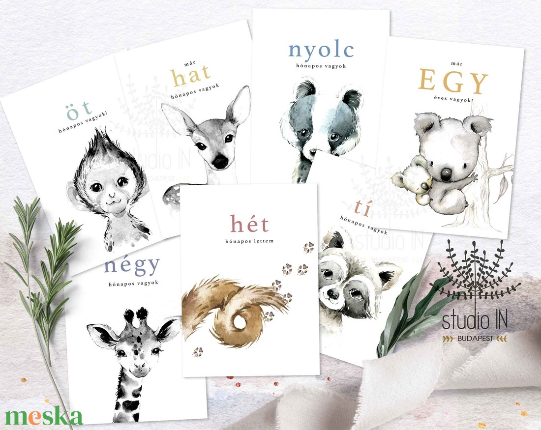 Állatkölykök babaköszöntő mérföldkő kártya