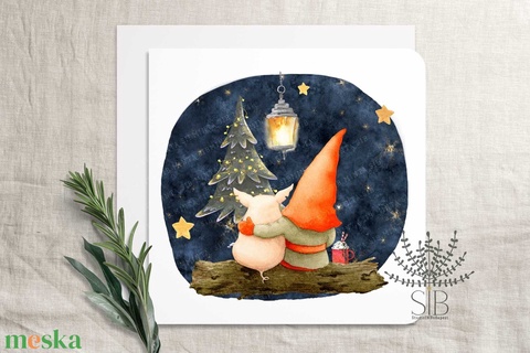 Karácsonyi manós, malackás képeslap