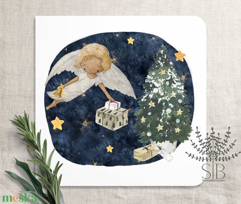 Karácsonyi képeslap, angyalkás képeslap, karácsonyi üdvözlő lap, kedves téli angyal képeslap