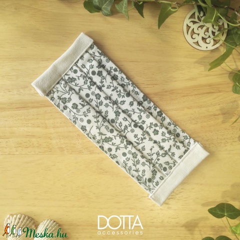Virágos zöld maszk - 2 rétegű - zöld női arcmaszk - tiszta pamut