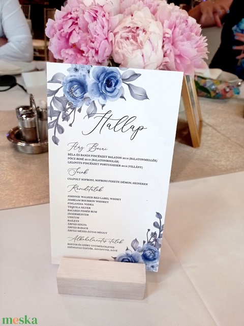 Esküvői menükártya - kék, virágos