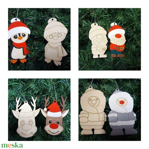 7 darabos DIY szett:Festhető, dekorálható cuki figurák fából
