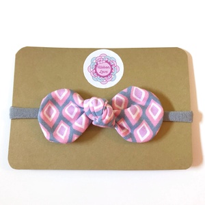 Rózsaszín, szürke, lila rombusz mintás pamut masni puha rugalmas fejpánt, hajpánt