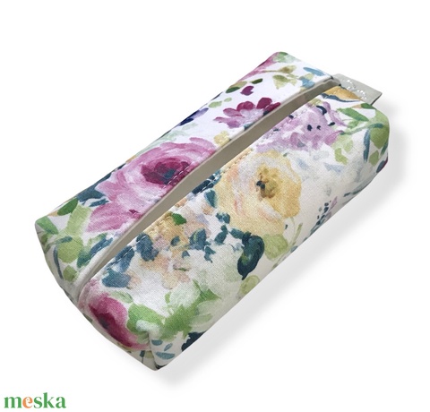 Színes, virág mintás, bélelt papírzsebkendő tartó - Artiroka design