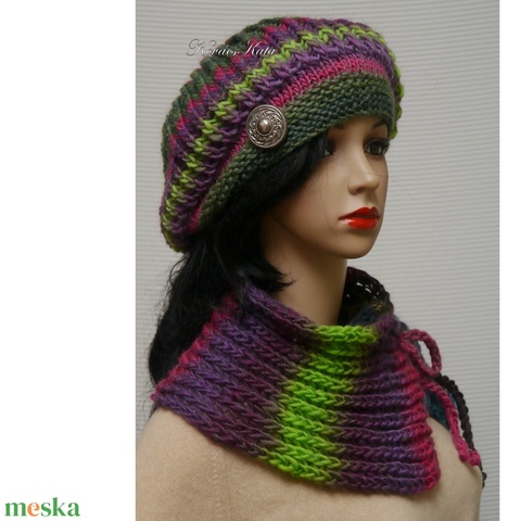 BORI-SZETT/ ligetszépe - exkluzív kézzel kötött gyapjú sapka sállal