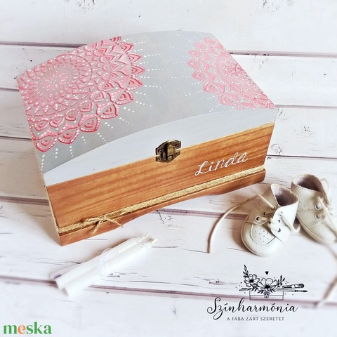 Emlékőrző fadoboz - Rózsa mandala