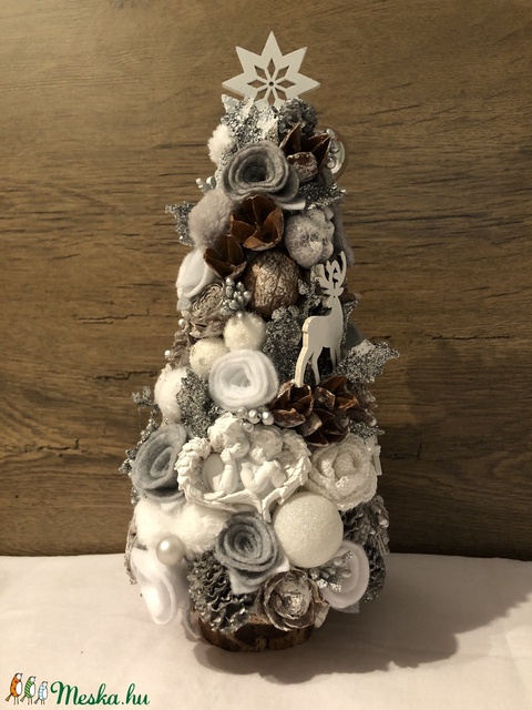 Dekoratív mini karácsonyfa ezüst-fehér