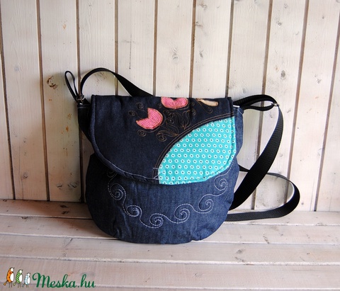 Adéle sötétkék hímzett női farmer táska, válltáska