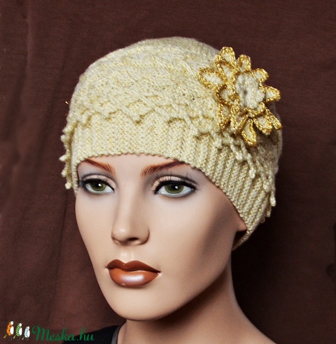 Gatsby - vintage sapka pezsgő színben arany színű szállal. Különleges, egyedi sapka fonott mintával.