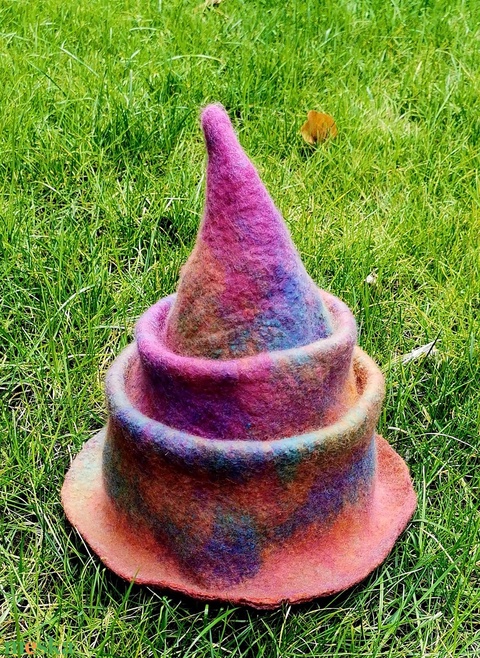 Szivárvány szaunasapka, szaunakalap, nemez sapka, manósapka, nemezkalap, fesztiválkalap