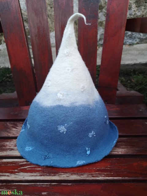 Kék-fehér szaunasapka, manósapka, nemez sapka