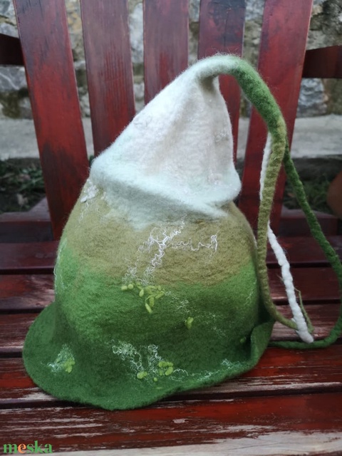 Zöld-fehér szaunasapka, manósapka, nemez sapka