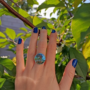 - Anyaga: akril, érme, akrilfesték, gyűrű alap, lakk