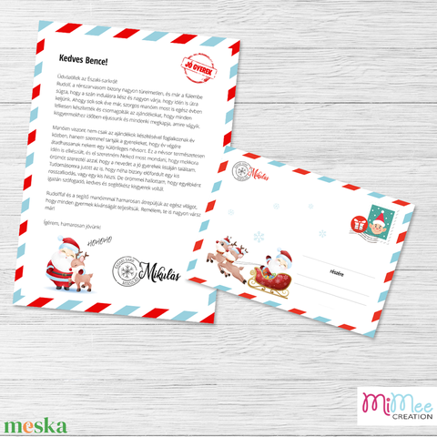 A termék ára az 1db A/4-es, névre szóló levelet és a hozzá tartozó borítékot tartalmazza.