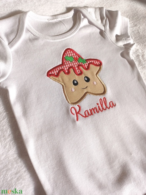 Hímzett névvel és cuki karácsonyi mintával ellátott, 100% pamut body