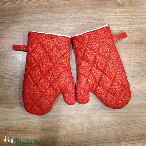 Piros alapon arany inda mintás edényfogó kesztyű