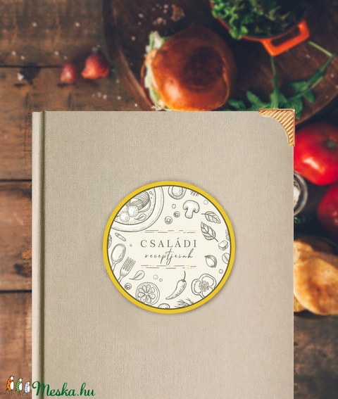 RECEPTKÖNYV, süllyesztett kör grafikával, Családi receptkönyv, szakácskönyv, Mama receptjei