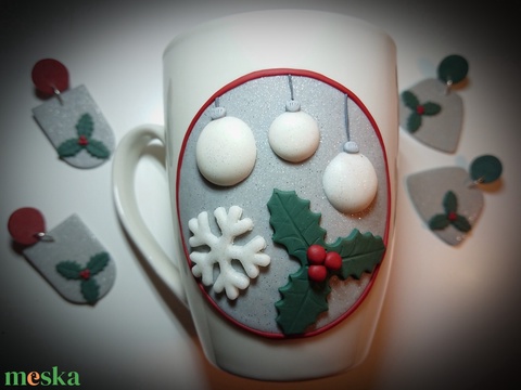 karácsonyi gömbök hópehely bögre gyurma díszítéssel Karácsony Mikulás ajándék