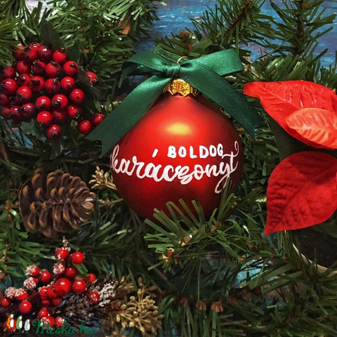 karácsonyi üveggömb - egyedi, kézzel készült, kalligráfia