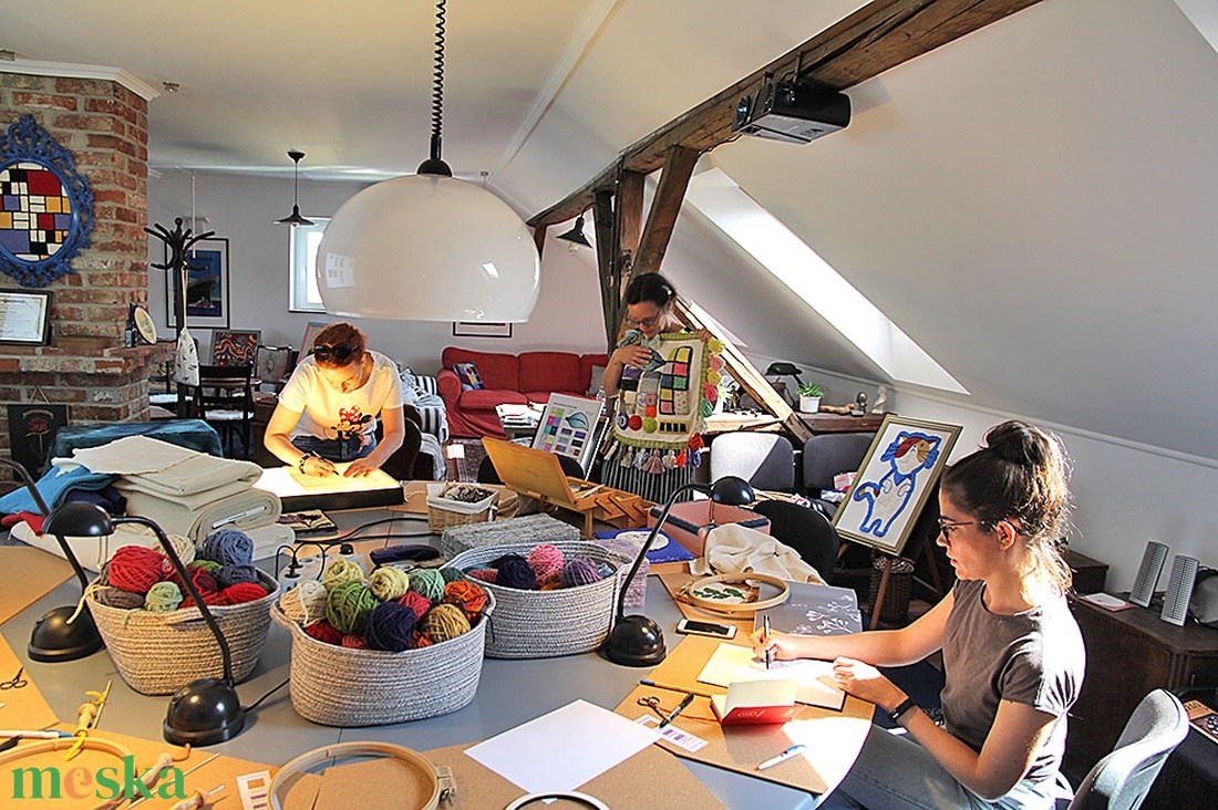 A mintát a helyszínen megtervezheted, vagy választhatsz az Annakamadar Alkotóműhely mintatárából is. A workshop alatt megtanulhatsz mindent, ami ahhoz szükséges, hogy később önállóan egy nagyobb szőnyeget is el tudj készíteni.