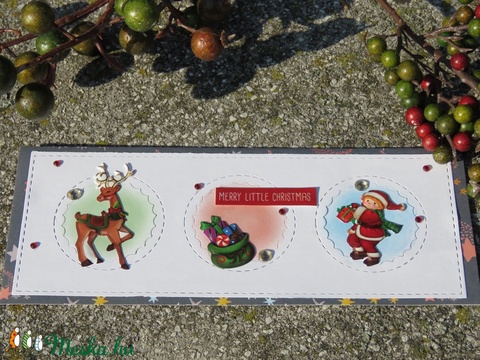 - Anyaga: mintás papír, szilikon nyomdához festék, papír, zsinór, 3d ragasztó, matrica, szalag, papírkivágat, öntapadós félgyöngy, chipboard